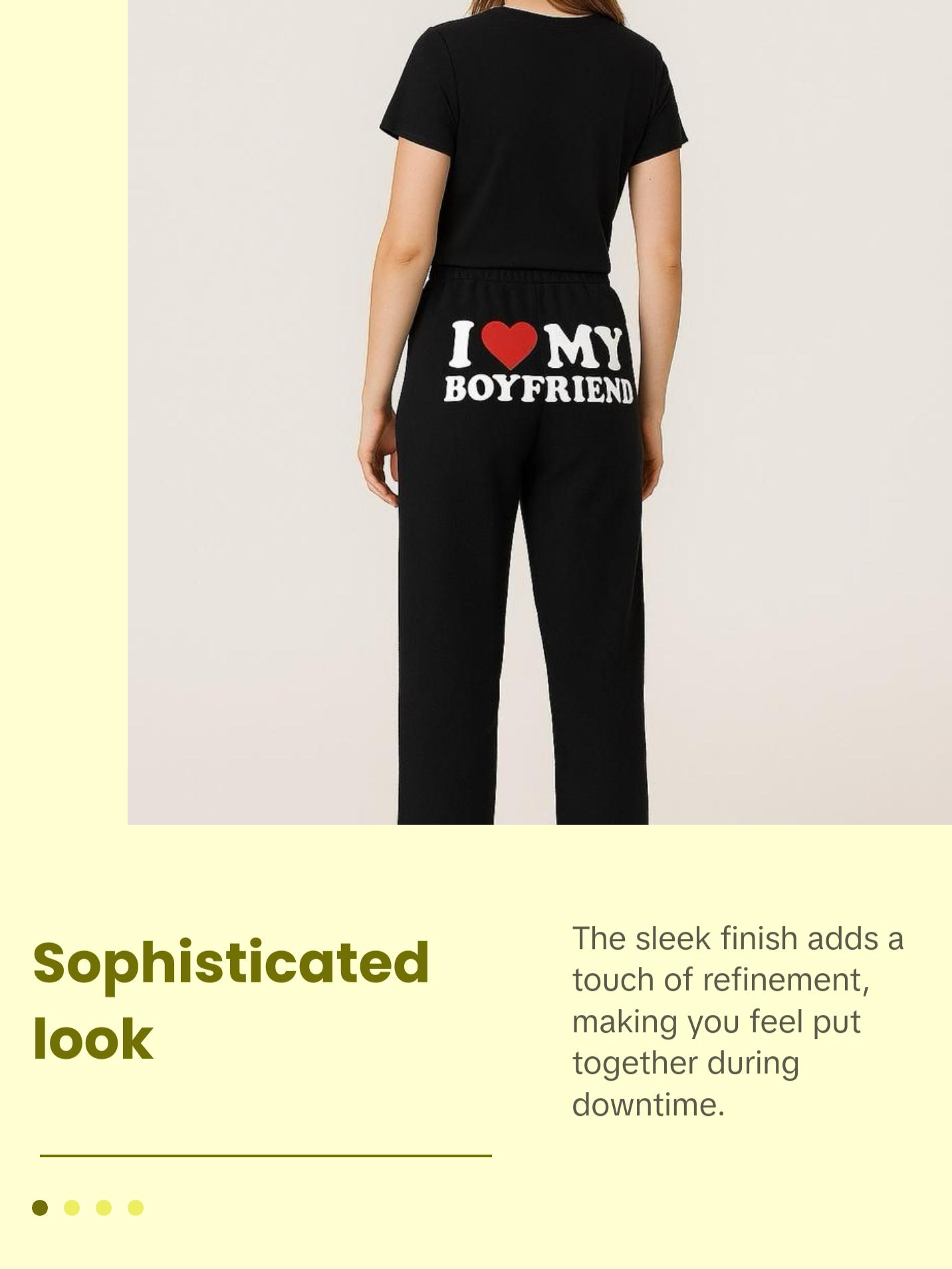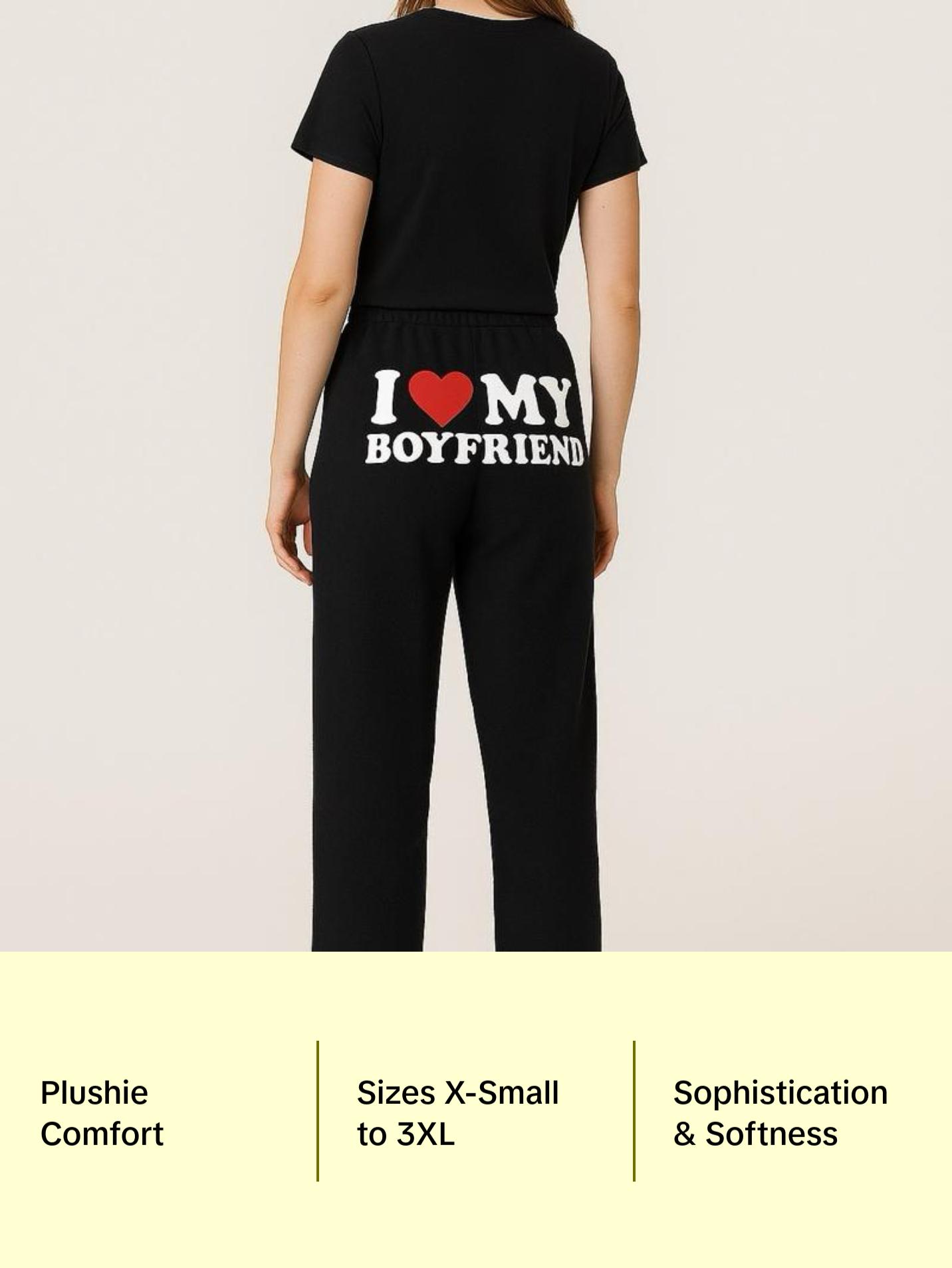 I Love My Boyfriend Black Pajamas - Luxurious Soft Plushie Loungewear for All Seasons Comfortable Sizes X-Small to 3XL Matching Pj Set Nightwear Womenswear
